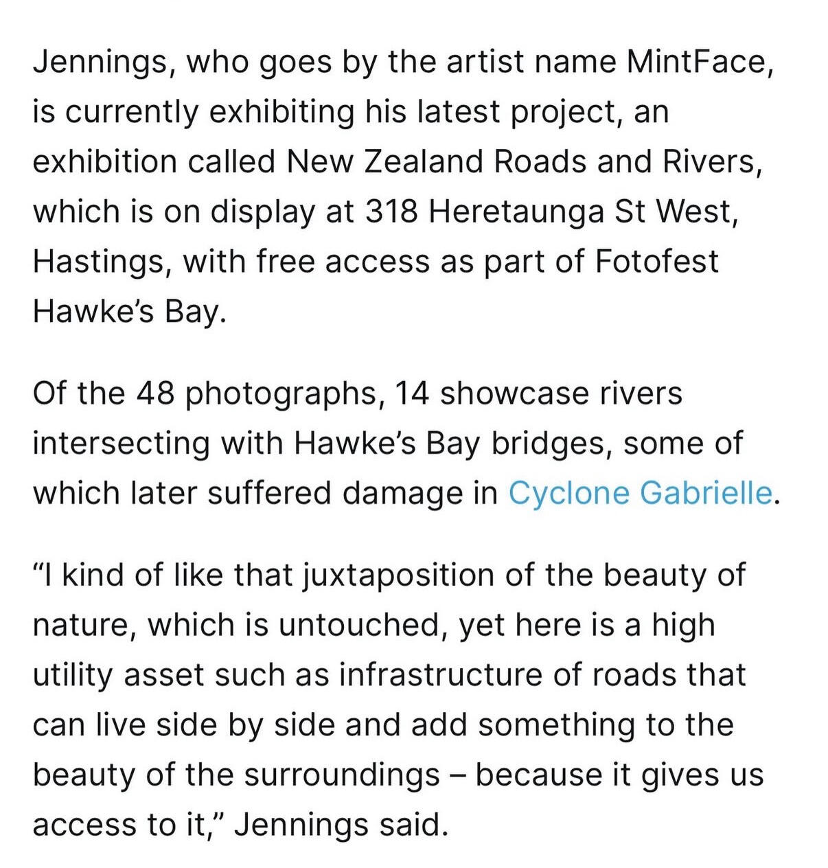 A study of locations, where the aerial view of the Geodetic, seen as an 'X' is mimicked through places where roads and rivers intersect in New Zealand.